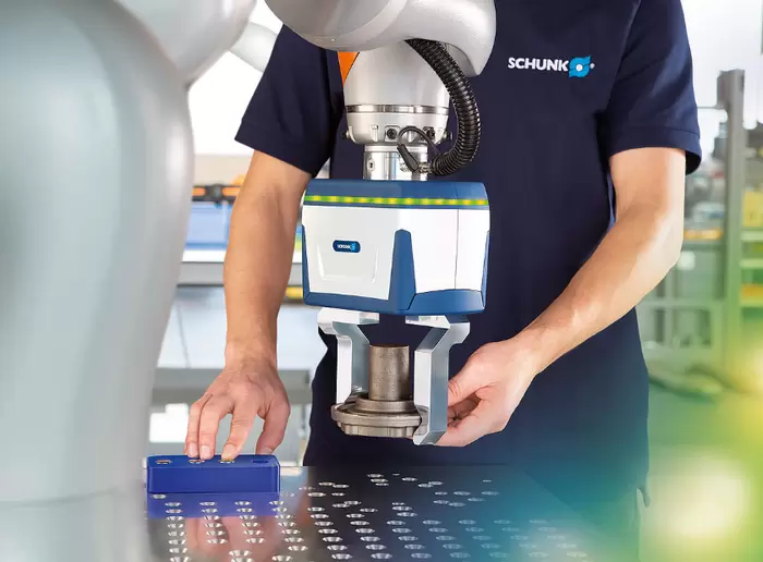 雄克專門為UR機(jī)器人設(shè)計(jì)的末端抓取產(chǎn)品套裝,安裝調(diào)試簡(jiǎn)單,可快速投入生產(chǎn)。圖片來(lái)源:SCHUNK