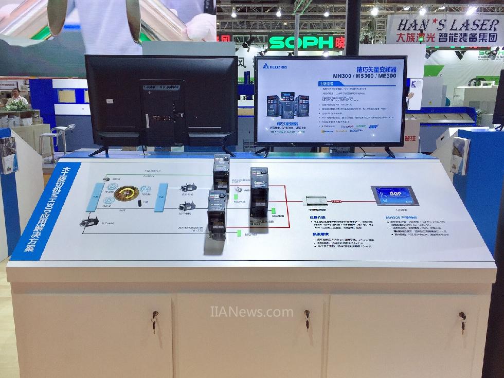 在臺(tái)達(dá)展示的木工開料機(jī)解決方案中,應(yīng)用了臺(tái)達(dá)CNC數(shù)控系統(tǒng)NC200系列,搭配今年新推出的體型精巧、控制簡單,具備強(qiáng)大變負(fù)載能力的伺服驅(qū)動(dòng)系統(tǒng)ASDA-B3系列,可以顯著提高板材加工效率及工件光潔度,滿足客戶的高速高精控制要求;同時(shí)該解決方案也可降低設(shè)備故障率,幫助客戶降低生產(chǎn)成本,提升產(chǎn)品競爭力。