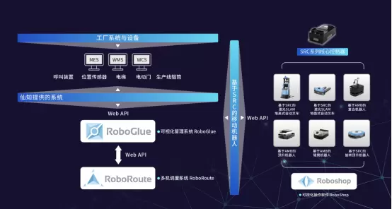 除以上獨特的優(yōu)勢外,配合仙知機器人可視化管理系統(tǒng)RoboGlue、多機調(diào)度系統(tǒng)RoboRoute、可視化操作軟件Roboshop全方位配套軟件,能夠輕松實現(xiàn)移動機器人的操作、調(diào)度和信息管理,并和工廠的MES、WMS系統(tǒng)無縫對接,讓用戶真正實現(xiàn)智能化物流。