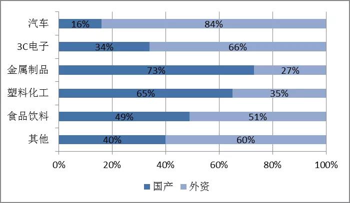 圖3 2018年國(guó)產(chǎn)和外資機(jī)器人本體應(yīng)用占比
