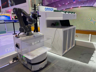 除了以上三種應(yīng)用場(chǎng)景,歐姆龍還帶來(lái)了最新產(chǎn)品MOMA機(jī)器人(協(xié)作機(jī)器人與LD移動(dòng)機(jī)器人的結(jié)合體),通過(guò)FA技術(shù)實(shí)現(xiàn)靈活的無(wú)人化物流倉(cāng)儲(chǔ),幫助合作伙伴提升整體效率。