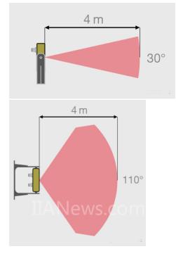 ? 寬保護(hù)區(qū)域:水平角度110° , 垂直角度30°