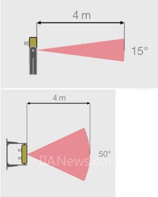 ? 窄保護(hù)區(qū)域: 水平角度50° , 垂直角度15°