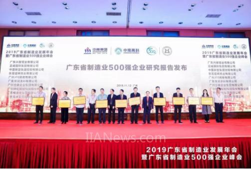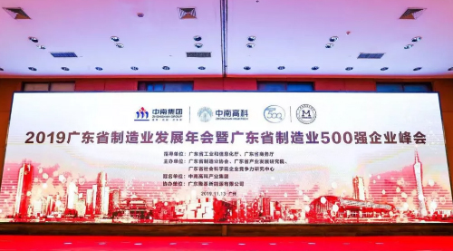 2019年11月13日,2019廣東省制造業(yè)發(fā)展年會(huì)暨廣東制造業(yè)500強(qiáng)企業(yè)峰會(huì)在廣州舉行,由廣東省制造業(yè)協(xié)會(huì)、廣東省產(chǎn)業(yè)發(fā)展研究院、廣東省社會(huì)科學(xué)院企業(yè)競(jìng)爭(zhēng)力研究中心共同主辦。
