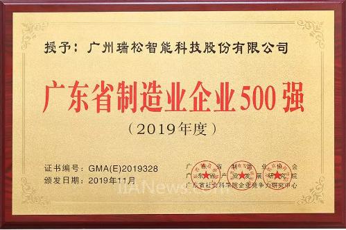 瑞松科技位列廣東制造業(yè)500強(qiáng)榜單