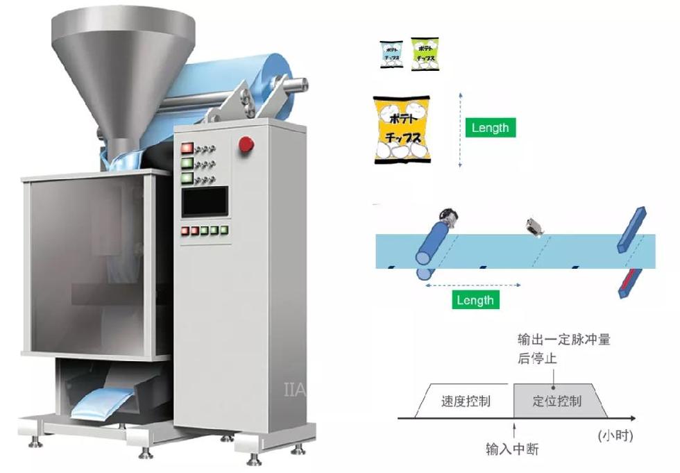 使用HMI可實現(xiàn)多品種生產(chǎn)所需的包裝材料長度設定。由速度控制通過傳感器輸入(中斷),可輕松根據(jù)長度設定執(zhí)行定位。