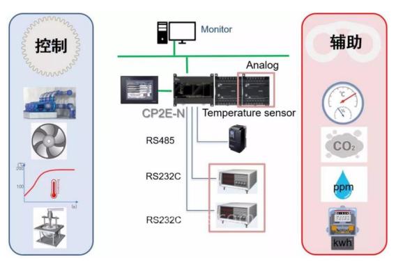 CP2E系列豐富的功能與充足的通信端口,可適用于泵控制、溫度控制、濕度控制、CO2、濃度/純度、電量等的裝置監(jiān)控。