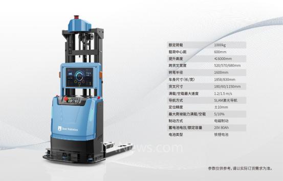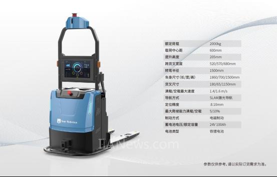 裝卸神器。車體前方裝有升降貨叉、車體尾部裝有平衡重塊,可自主靈活完成貨物的裝卸、堆垛與搬運。