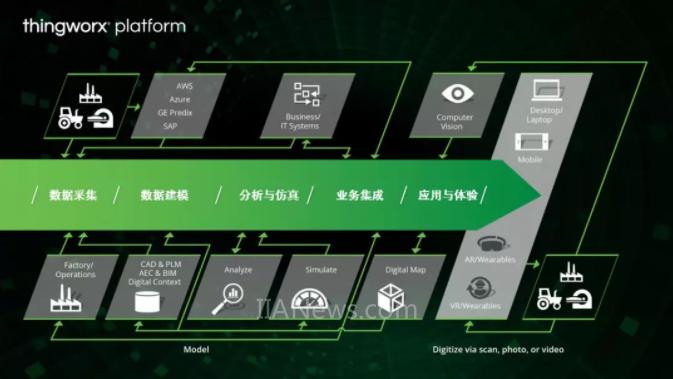 羅克韋爾自動化和PTC公司的合作,就像是花生醬遇上了巧克力,而FactoryTalk InnovationSuite就是雙方碰撞后產(chǎn)生的第一個花生醬杯。這是一套幫助客戶實(shí)施數(shù)字化轉(zhuǎn)型的軟件工具集合,整合了PTC的ThingWorx工業(yè)物聯(lián)網(wǎng)平臺,其中包括Kepware的工業(yè)連接和Vuforia增強(qiáng)現(xiàn)實(shí)(AR)工具,也整合了羅克韋爾自動化的FactoryTalk Analytics和MOM平臺,同時這些平臺之間實(shí)現(xiàn)了底層數(shù)據(jù)互通。
