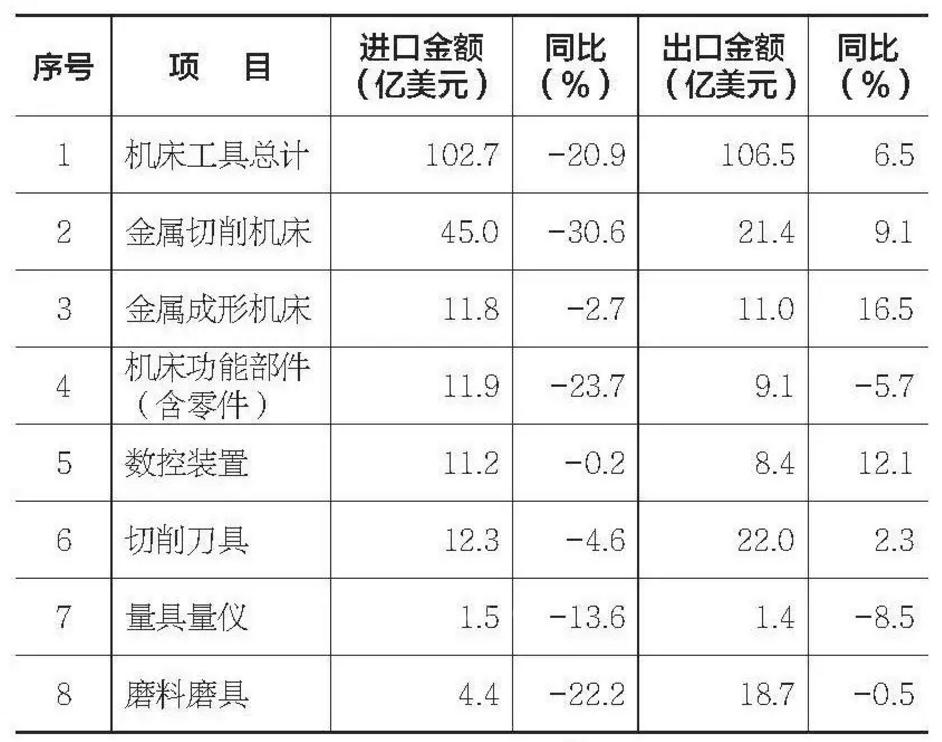 表1 2019年1-9月機(jī)床工具行業(yè)及部分產(chǎn)品類別進(jìn)出口情況