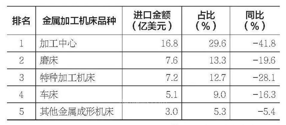 表2 進(jìn)口金額排前位的金屬加工機(jī)床品種