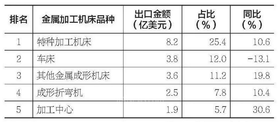 表3 出口金額排前5名的金屬加工機(jī)床品種
