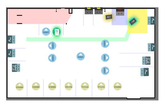 可以輕松更新機器人地圖的不同區(qū)域,這些區(qū)域用不同的顏色區(qū)分。在這張地圖上,您可以看到:
