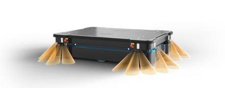 為了使機器人能夠在遇到障礙物時安全后退,或者探測從后面或側面接近的人,并在需要時停車或調整路線,所有MiR機器人均配備有360 度視場的雙激光掃描儀,采用最新、最先進的SICK microScan 3的激光掃描技術,幫助機器人不受光線和灰塵的影響,其掃描精度是其他類型激光掃描器的10倍。此外,為了確保MiR移動機器人日常操作安全順利,安裝在機器人前側的雙3D相機可以幫助機器人探測0-1,700mm高的障礙物,在120°的水平視角的幫助下將障礙物一覽無遺,使其能安全地圍繞工作臺移動,還可避開如壁裝機柜或貨架等障礙物。