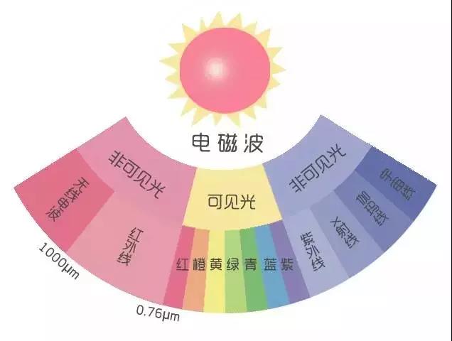 太陽發(fā)出的光波又叫電磁波。可見光是人眼能夠感受的電磁波,經(jīng)三棱鏡折射后,能見到紅、橙、黃、綠、青、藍(lán)、紫七色光