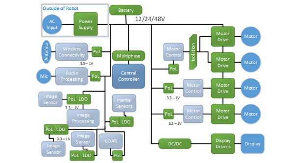 圖1:典型機(jī)器人的高級(jí)框圖(包括電源系統(tǒng))