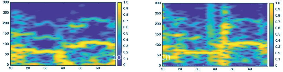 圖8.無加速度計數(shù)據(jù)(左)和有加速度計數(shù)據(jù)(右)的加性頻譜比較。利用加速度計可以重建用戶的心率。