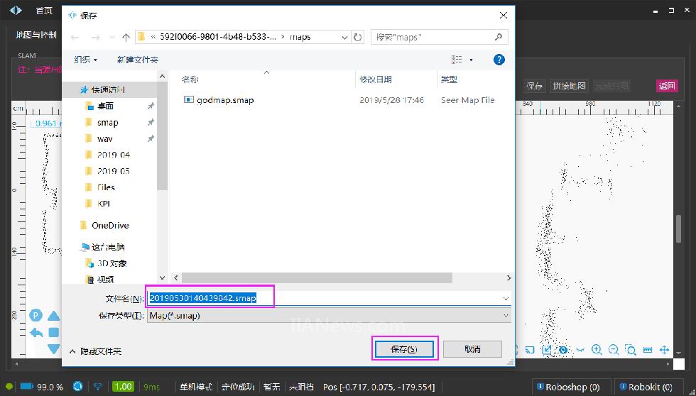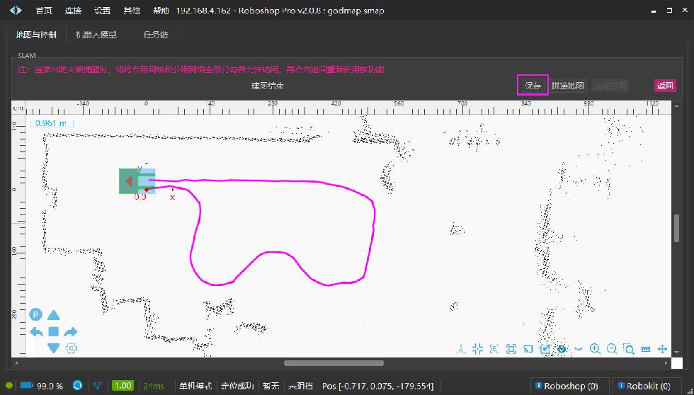 第三步:等待建圖完成,然后點(diǎn)擊右上角的【保存】按鈕。