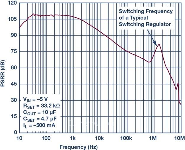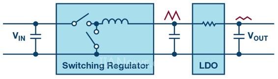 人們常常使用線性穩(wěn)壓器代替無(wú)源LC濾波器來(lái)清理開(kāi)關(guān)穩(wěn)壓器產(chǎn)生的電壓。它們通常具有很高的電源電壓抑制比(PSRR)。這意味著,線性穩(wěn)壓器的大部分輸入紋波會(huì)被阻擋,因此線性穩(wěn)壓器的輸出紋波很少。此外,線性穩(wěn)壓器的輸出電壓有自己的閉環(huán)回路,因此會(huì)進(jìn)行較好的精確調(diào)節(jié)。