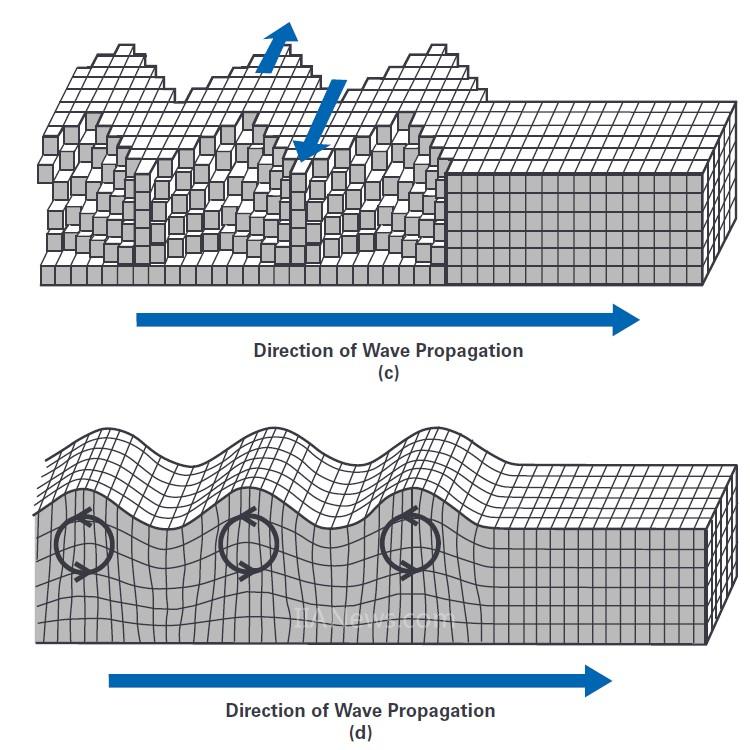 圖1.地震波的類型:(a) 縱波;(b) 橫波;(c) 勒夫波;(d) 瑞利波5
