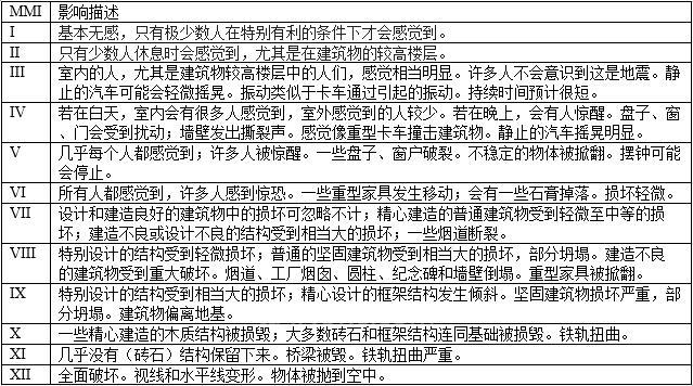 表1.簡(jiǎn)易版修正Mercalli強(qiáng)度量表