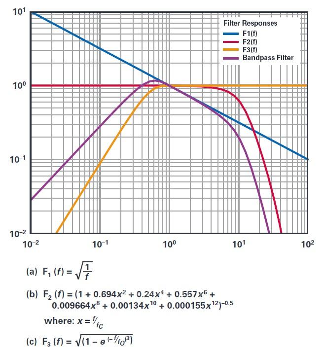 日本氣象廳(JMA)設(shè)計(jì)了一種地震強(qiáng)度量表,它可以根據(jù)強(qiáng)運(yùn)動(dòng)三軸加速度數(shù)據(jù)來計(jì)算9。每個(gè)軸的加速度時(shí)間信號(hào)都信息傅立葉變換。圖2所示的帶通濾波器(由周期效應(yīng)濾波器、高截止和低截止濾波器組成)應(yīng)用于每個(gè)軸的頻率信號(hào)。圖中還給出了每個(gè)子過濾器的數(shù)學(xué)表示。