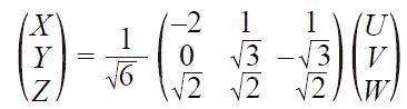 式4展示了將同質(zhì)三軸排列轉(zhuǎn)換為笛卡爾坐標(biāo)系的轉(zhuǎn)換矩陣。 (4)