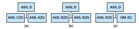 根據(jù)EPS或制動系統(tǒng)示例,ASIL D系統(tǒng)的評級可以通過分解子系統(tǒng)來實現(xiàn),如圖3a、圖3b和圖3c所示。