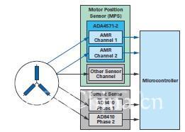 準確的角度測量將繼續(xù)由雙AMR傳感器的兩個通道提供。額外的系統(tǒng)診斷,例如電機負載和軸的位置,可以從準確相位電流檢測放大器的動態(tài)狀態(tài)(反電動勢)間接推斷得出。