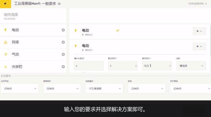 根據(jù)自身對連接產品的了解程度,用戶可以選擇“協(xié)助”、“沒有協(xié)助”兩種模式,在需求不明確的情況下,浩亭在線“配置器”將根據(jù)限定條件推薦連接方案。需求越明確,限定參數(shù)越詳細,系統(tǒng)推薦的方案就越精確。