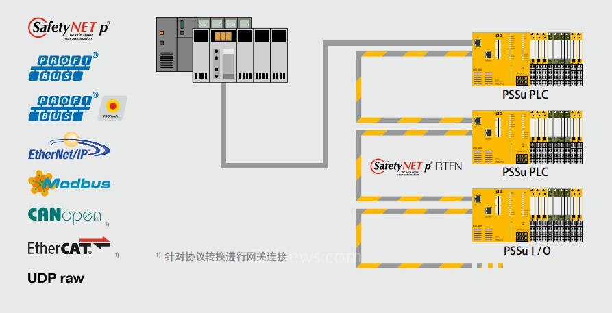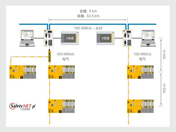 ●系統(tǒng)內(nèi)部通過安全等級(jí)SIL3的實(shí)時(shí)以太網(wǎng)SafetyNETp搭建安全網(wǎng)絡(luò)結(jié)構(gòu)