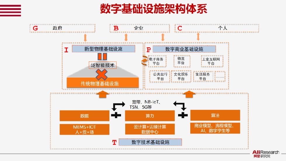 數(shù)字技術(shù)在與傳統(tǒng)基礎(chǔ)設(shè)施融合創(chuàng)新中,伴隨著新需求的不斷迭代,正在形成的新的技術(shù)架構(gòu)體系,數(shù)字基礎(chǔ)設(shè)施包括數(shù)字技術(shù)基礎(chǔ)設(shè)施、數(shù)字商業(yè)基礎(chǔ)設(shè)施、新型物理基礎(chǔ)設(shè)施三個(gè)部分。