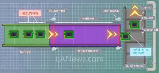 同樣的,在檢測環(huán)節(jié),針對產(chǎn)品當(dāng)前的排列情況,同步傳送帶的控制,將原本隨機(jī)排列的工件,一個個準(zhǔn)確地送達(dá)下料口。