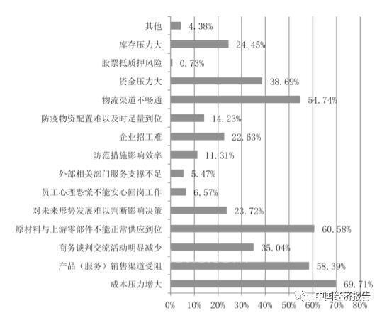 調(diào)查結(jié)果顯示,有69.71%的企業(yè)認(rèn)為是成本壓力增大。顯然,如上文所述,疫情爆發(fā)從多個(gè)角度導(dǎo)致了企業(yè)運(yùn)營(yíng)成本的增加,并進(jìn)而導(dǎo)致企業(yè)盈利下滑,給企業(yè)生存與發(fā)展帶來(lái)巨大壓力。