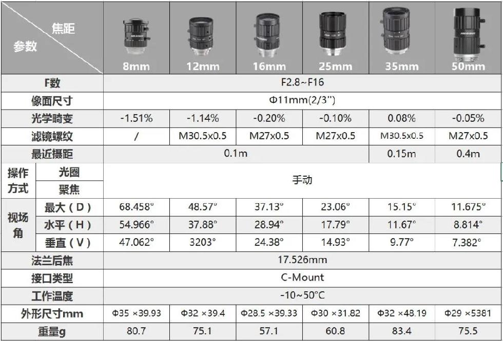 *以上視場角數(shù)據(jù)針對Sony IMX264芯片(尺寸:8.45mm*7.07mm)標(biāo)注