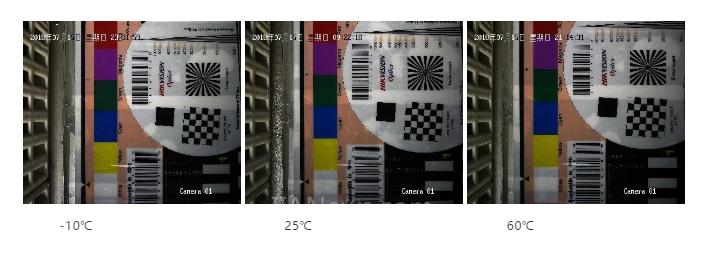 溫度變化對于鏡頭整體結(jié)構(gòu)的影響無法避免,極端溫度變化通常需要重新對焦來保證成像質(zhì)量。新系列產(chǎn)品設(shè)計過程中,加大了對公差范圍容忍度,在高低溫循環(huán)(-10℃~25℃~60℃)環(huán)境中成像依然穩(wěn)定,無需重新對焦,依然能夠得到穩(wěn)定清晰的圖像。
