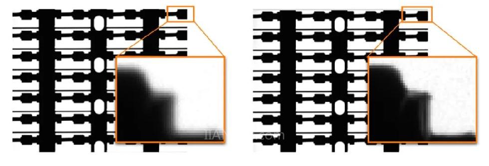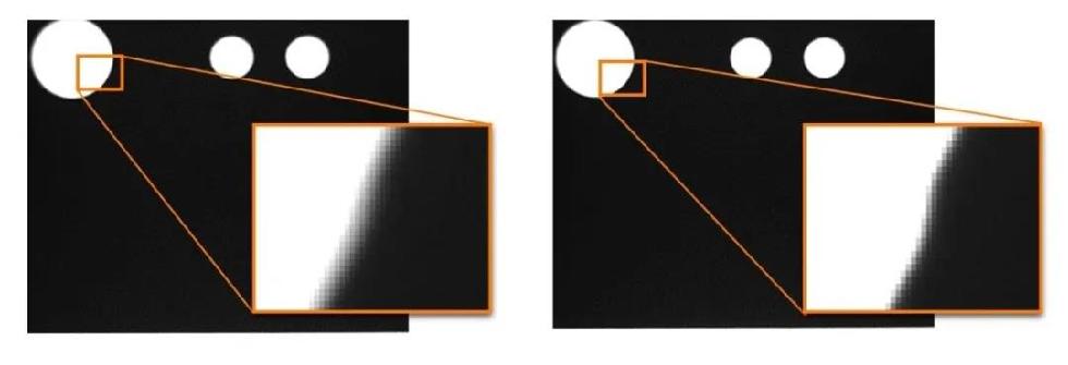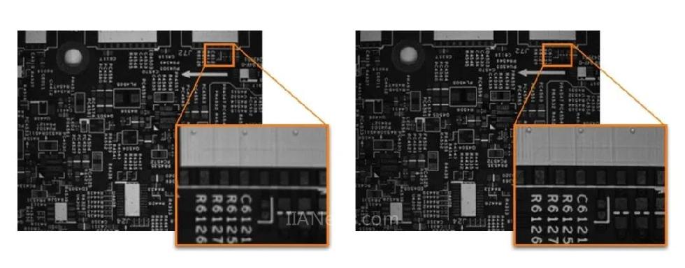 針對高對比度檢測場景,MF新系列鏡頭邊緣銳利度更高,可有效檢測器件尺寸及缺陷。