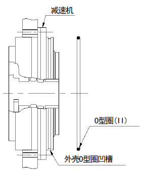 (1)請(qǐng)參考下圖,將O型圈(Ⅱ)放入減速機(jī)外殼O型圈凹槽內(nèi)。