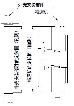 (2)請(qǐng)確認(rèn)減速機(jī)(外殼部)的定位圓軸已準(zhǔn)確地插入外殼安裝部件的定位圓孔。