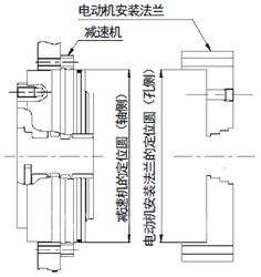 (3)請(qǐng)確認(rèn)減速機(jī)(外殼部)的定位圓軸已準(zhǔn)確地插入電動(dòng)機(jī)安裝法蘭的定位圓孔。