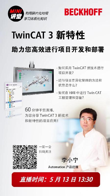 本期倍福MINI講堂降為大家展示如何使用TwinCAT 3的新功能和新特性來進行項目開發(fā)和項目部署,知識點涵蓋: