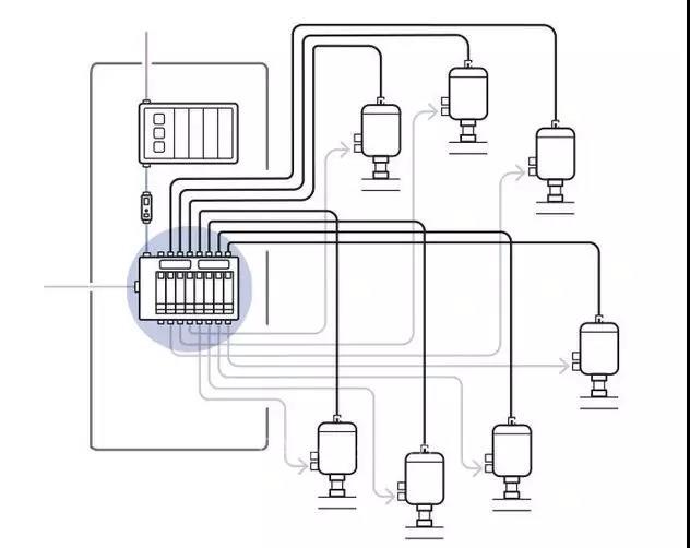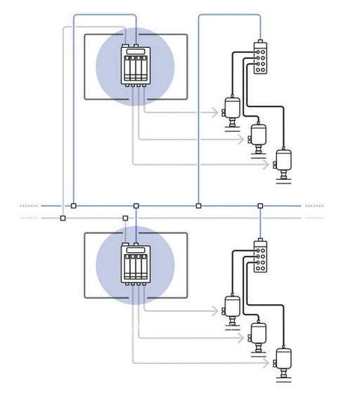 "緊湊快速切換":自動(dòng)化系統(tǒng)直接位于現(xiàn)場,無需控制柜。每個(gè)過程閥被單獨(dú)控制,智能控制頭供電,過程閥通過LED指示其開關(guān)狀態(tài)。