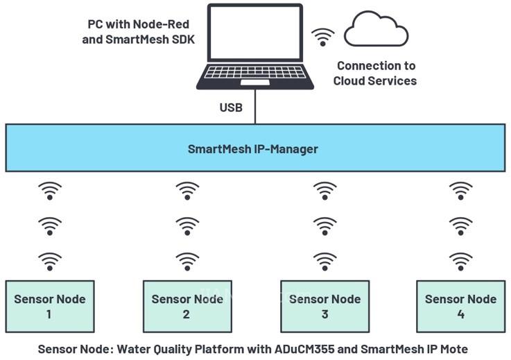 本文介紹使用ADI的ADuCM355和SmartMesh IP技術的無線水質(zhì)監(jiān)測系統(tǒng)。這些產(chǎn)品具有小尺寸和低功耗特性,因此傳感器節(jié)點可以由電池供電。即使在惡劣的外部環(huán)境中,采用穩(wěn)健的SmartMesh技術也能可靠地傳輸數(shù)據(jù)。該演示說明了一個高度可靠的無線監(jiān)測系統(tǒng)以及云連接。對于不同的最終應用,都極具應用前景,利用該技術,不僅能夠在難以接近的位置監(jiān)測水質(zhì),為不同的水質(zhì)閾值創(chuàng)建警報和警告,還能夠利用測量數(shù)據(jù)持續(xù)獲得更多可靠的水質(zhì)信息。