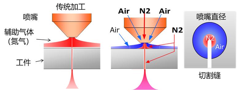 切割時板材上部溢出的絕大部分是空氣降低了N2使用量