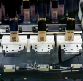 新的系統(tǒng)布局以一套22米的環(huán)形軌道和40個(gè)動(dòng)子構(gòu)成的XTS系統(tǒng)為核心,可以沿著智能輸送系統(tǒng)布置各個(gè)底妝產(chǎn)品灌裝工位。灌裝過(guò)程包括六個(gè)工站:進(jìn)瓶、灌裝、插入分配器泵、軋蓋和貼標(biāo)簽以及成品出料。