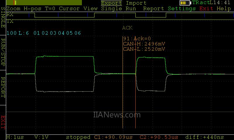 2、 有經(jīng)驗的用戶以利用PCAN-Diag FD的示波器上波形形狀評估終端電阻的情況(看側翼振鈴等)