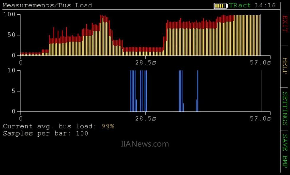總線負載過高會引起傳輸故障。這個通常是指發(fā)送的報文過多,特別是在波特率和cycle time較高的情況下容易發(fā)生?;蛘呤且粭lCAN報文發(fā)生錯誤,然后CAN控制器一直嘗試重發(fā)該報文,這會導致總線負載增加。