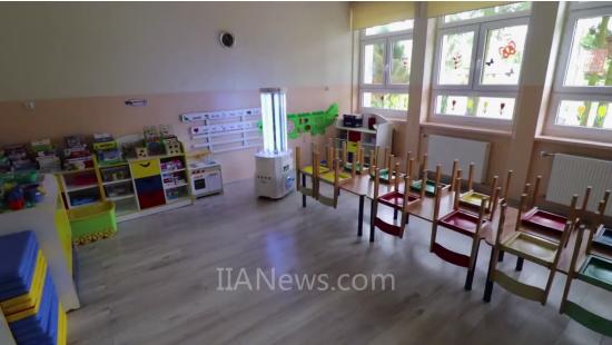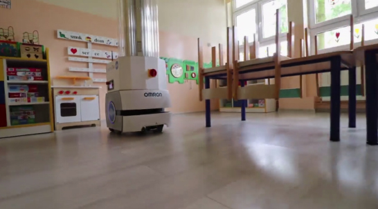 在波蘭的某處幼兒園內(nèi),我們驚喜地發(fā)現(xiàn)了一臺行走在每一個教室,不錯過每一個角落,反復(fù)殺菌消毒的機器人。