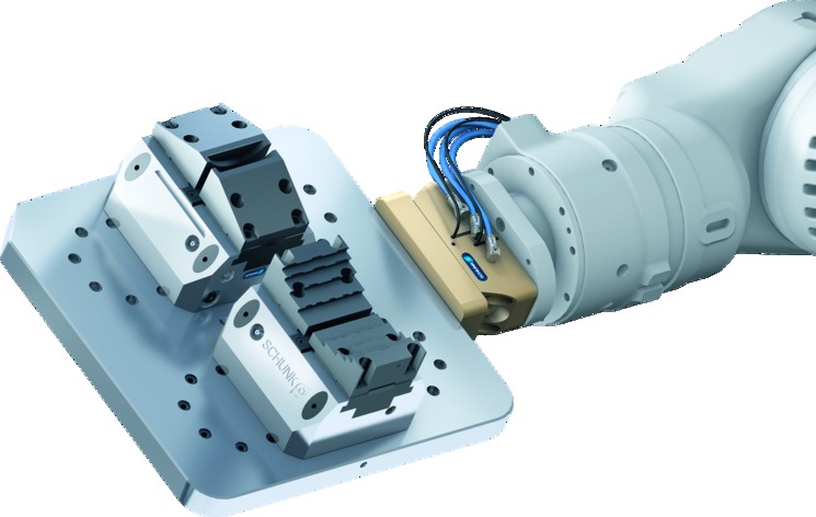 雄克自動化機床上下料方案:VERO-S NSA plus快換托盤和NSR機器人聯(lián)軸器。