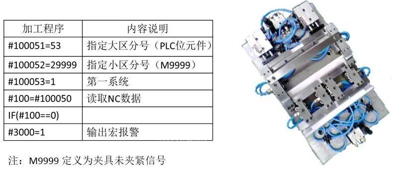 在自動(dòng)夾治具加工時(shí),可以在加工程序中通過API大小區(qū)分功能讀取夾治具松&夾信號(hào),達(dá)到確認(rèn)夾治具當(dāng)前狀態(tài),避免出現(xiàn)加工故障,如圖3所示。